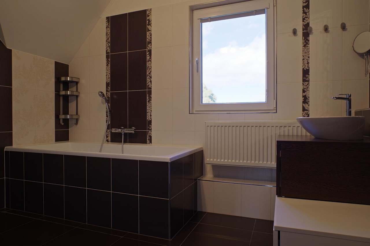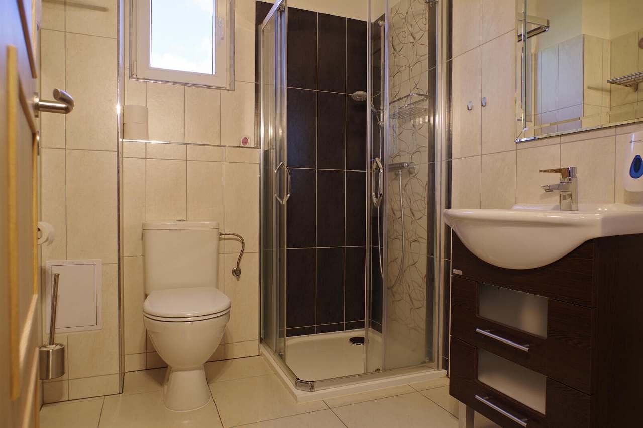 Pro všechny pokoje je k dispozici veliká prostorná koupelna s vanou a toaletou v 1.patře a menší koupelna se sprchovým koutem a toaletou v přízemí. Je možné zapůjčit pro děti stupínky k umyvadlu, či dětské WC prkénko.