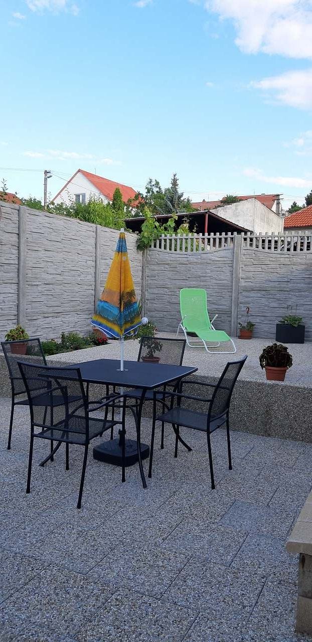 Jedná se o apartmán pro 2 osoby ve dvoru rodinného domku. Parkování na soukromém parkovišti, uložení kol v pergole. K dispozici posezení u bazénu, kryté v pergole s televizí, rádiem. Možnost plynového grilu, volně stojící bazén.