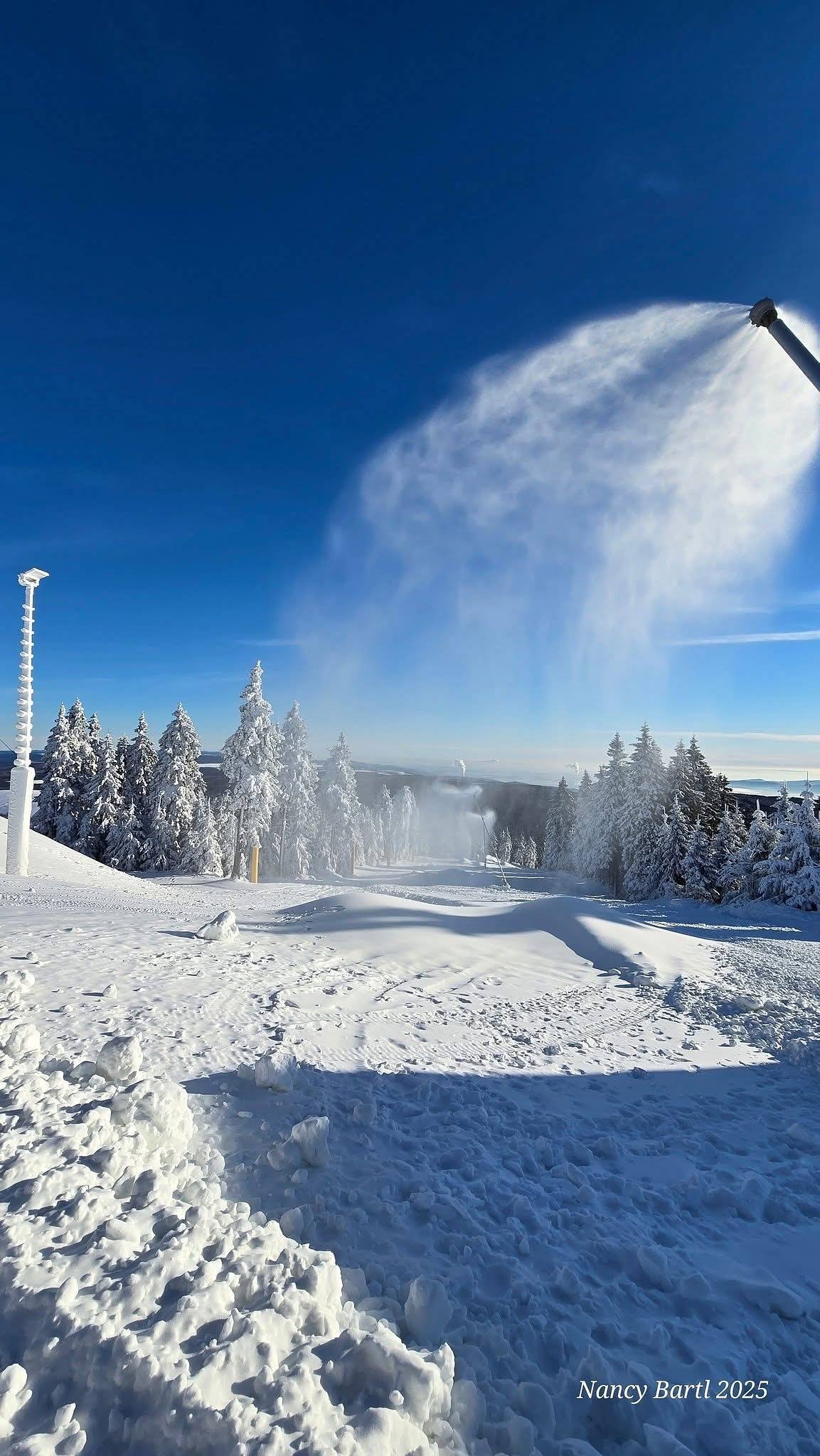 Běžkařské stopy, jak na České tak Německé straně.