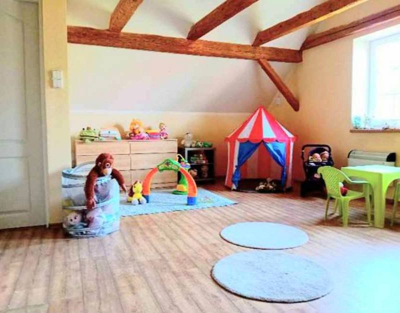 Kuchyně, koupelny, krbová kamna, dětské hřiště, dětská herna, pingpongový stůl.