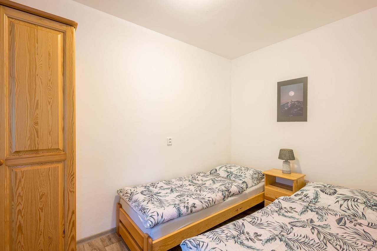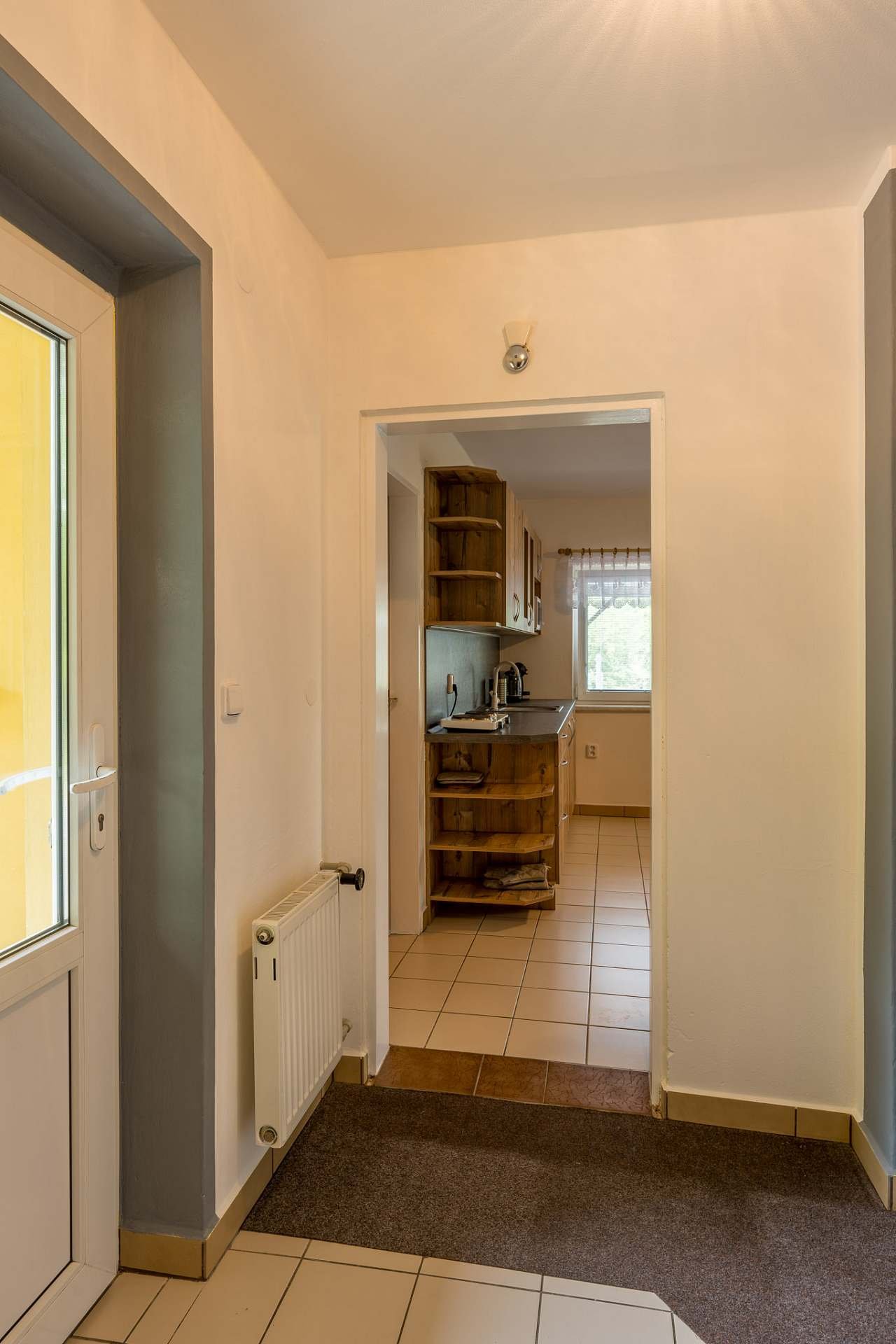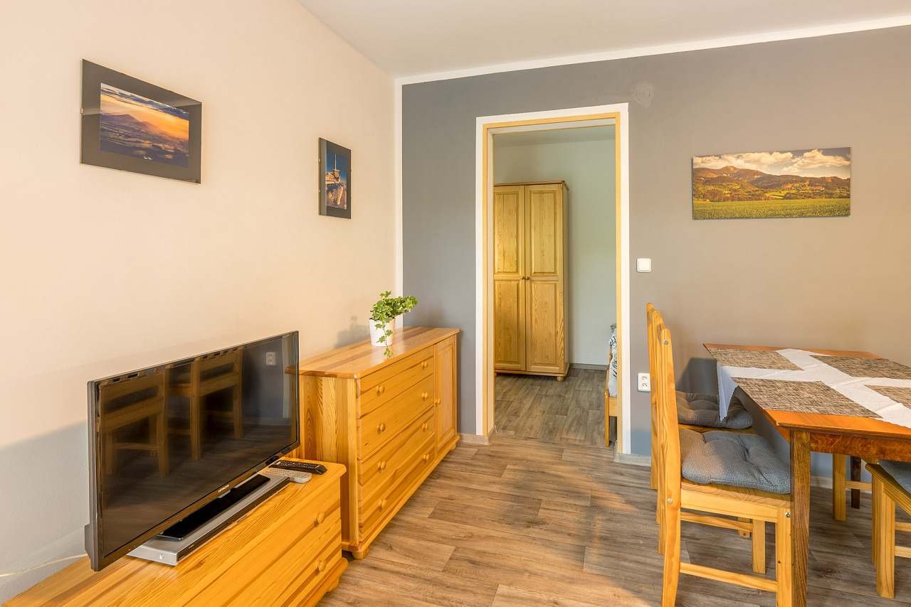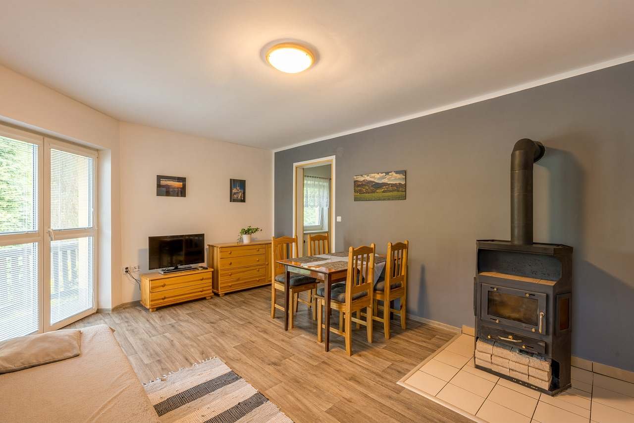 Chalupa má velkou místnost, kde se nachází nová kuchyňská linka včetně vybavení. A obývací část s rozkládací sedačkou pro 2 osoby, jídelním stolem, židlemi a televizí. Z ní je vstup bez dveří do ložnice s velkou skříní na uložení osobních věcí a 2 postelemi.