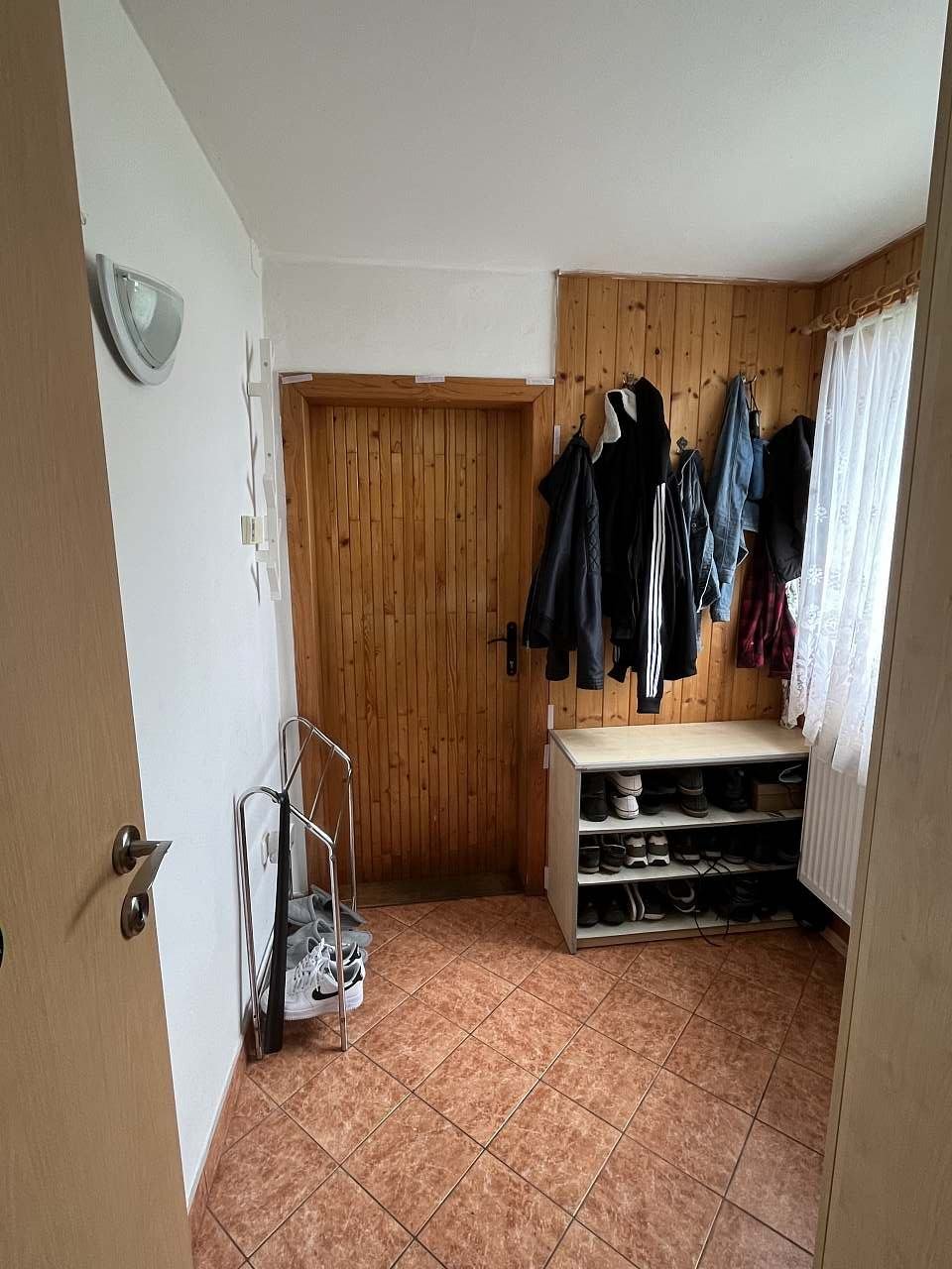 Koupelna se nachází v přízemí a je vybavená sprchovým koutem, umyvadlem se zrcadlem, pračkou se sušičkou a samostatnou toaletou.