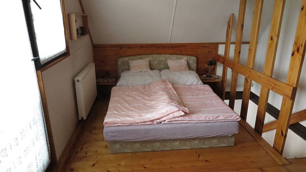Dvě ložnice v prvním patře, v každé je manželská postel. V podkroví chaty je dětský pokoj, kde jsou dvě postele a ještě jedna matrace.