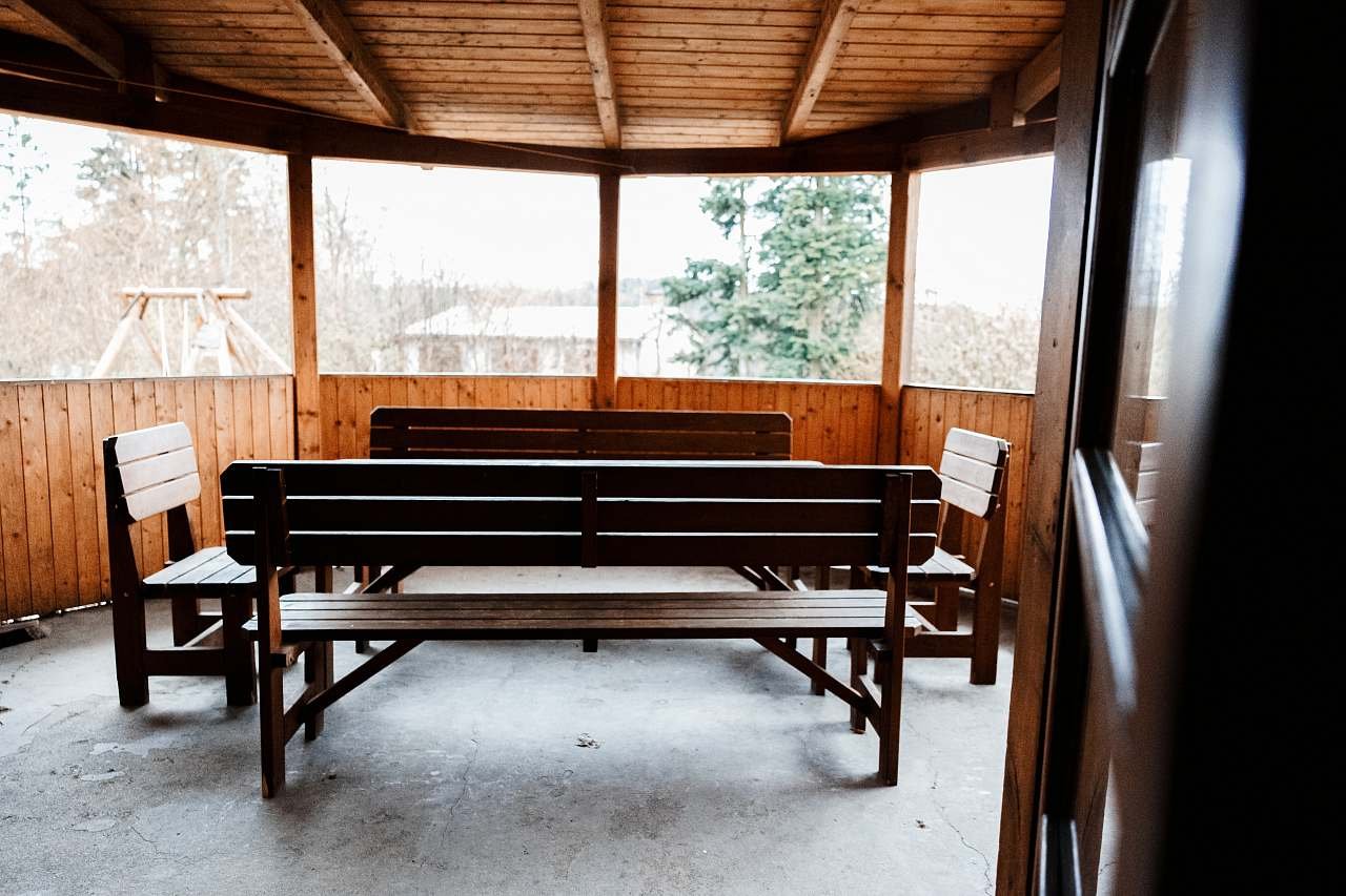 Terasa s venkovním posezením, ohništěm, možnost grilování.