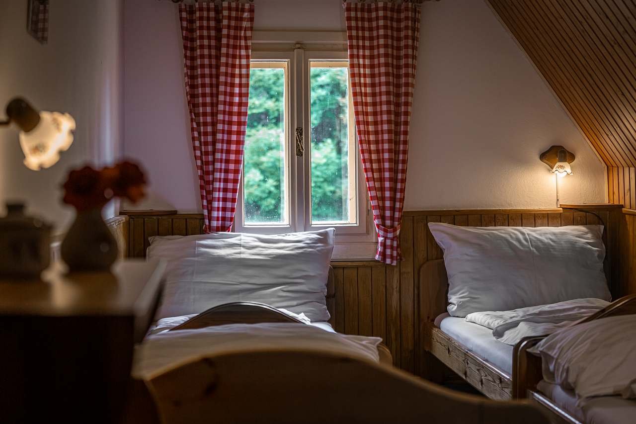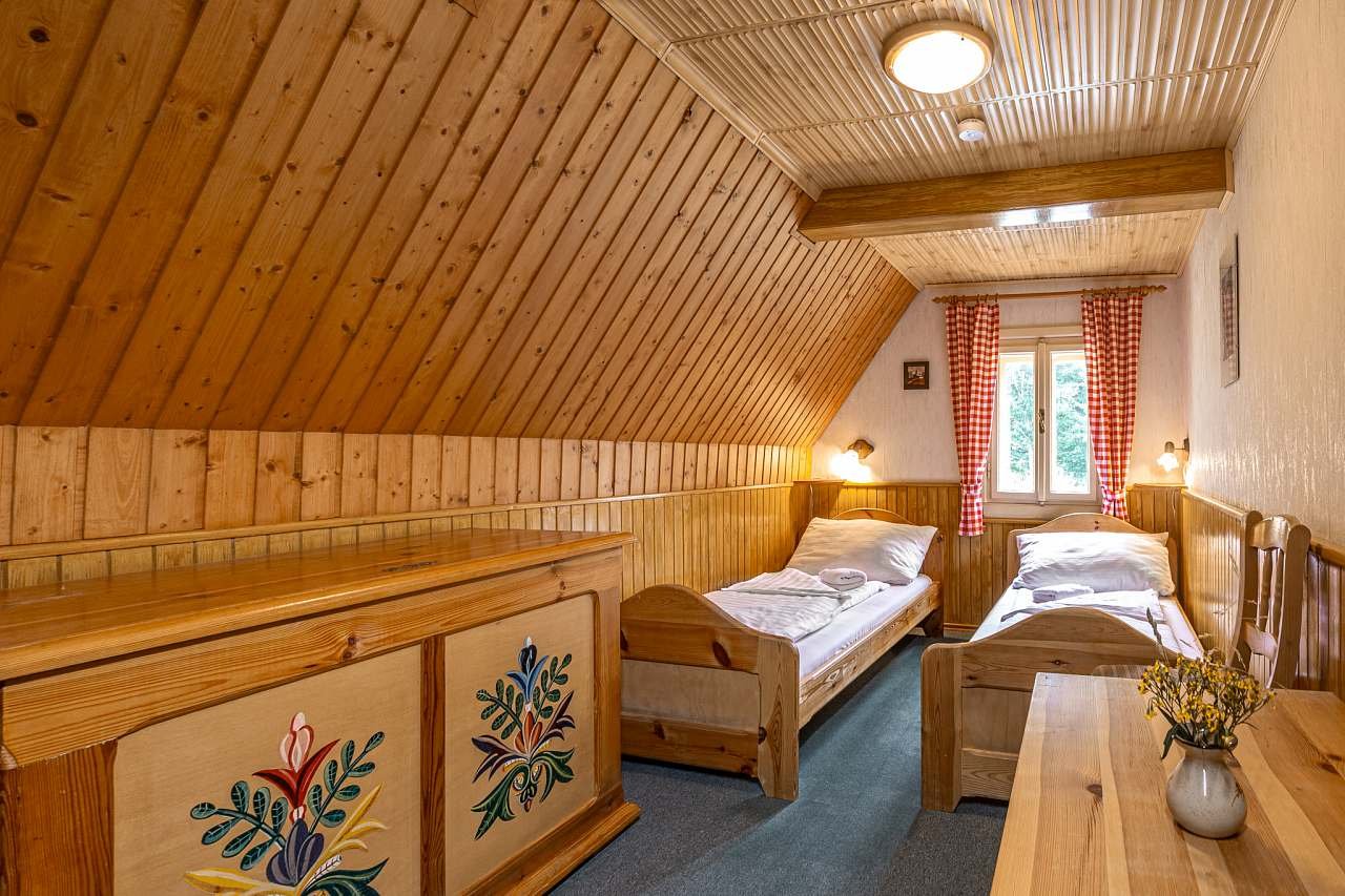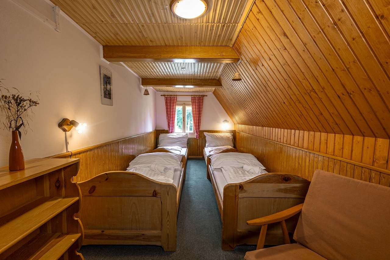 Abychom nenarušili jedinečnost tohoto místa, nezatěžovali jsme chalupu dalšími zásahy a naši hosté si ji nyní mohou pronajmout jako celé stavení s kapacitou 12ti lůžek (4 ložnice, 2 koupelny, 1 sprchový kout).