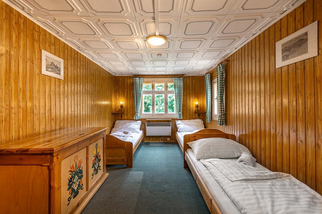 4 ložnice, 1 světnice, 1 kuchyně (komplexně vybaveno včetně 2 sporáků), dětský koutek.