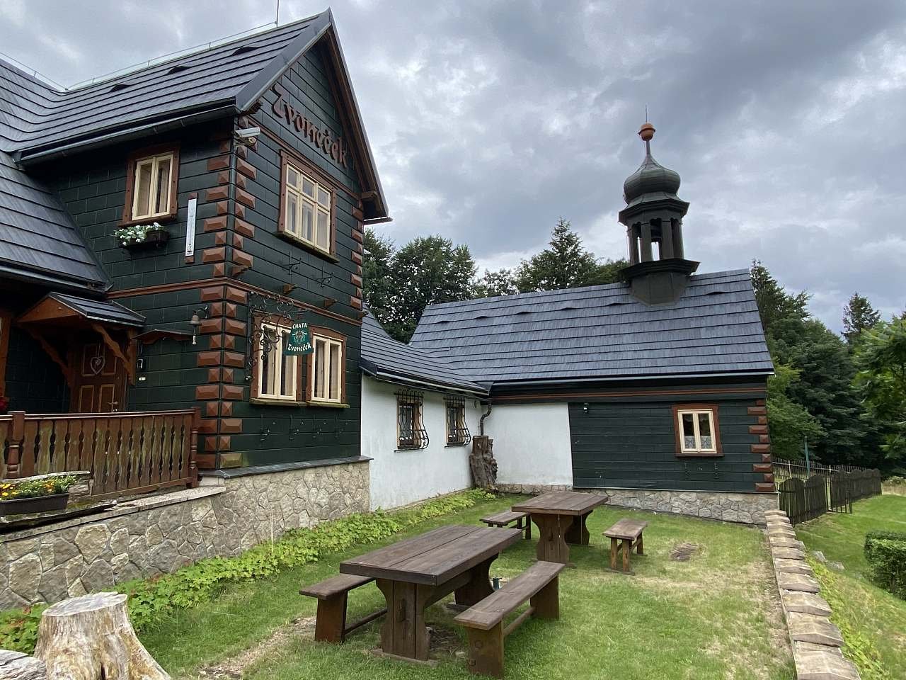 Jedná se o původní německé podstávkové stavení, jejíž část sloužila jako škola. Druhá budova byla odedávna hostinským domem s vyhlášenou kuchyní. Poslední rekonstrukcí pak došlo k citlivému propojení obou stavení.