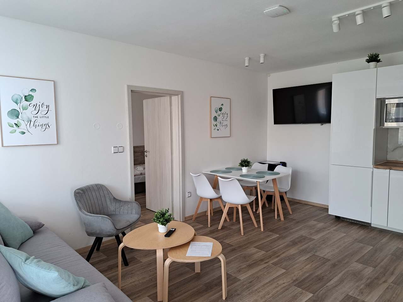 Apartmány s celoročním provozem se nachází v nové rezidenční vilové čtvrti Pod Novou. Dispozičně jsou rozdělené na přízemní apartmán s přístupem do zahrady s kapacitou 10...