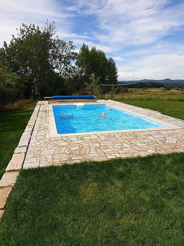 Nabízíme k pronájmu krásně zrekonstruovanou roubenku s obrovskou zahradou a velkým krytým vyhřívaným bazénem s protiproudem (8 x 4 m), který je v provozu od poloviny dubna...