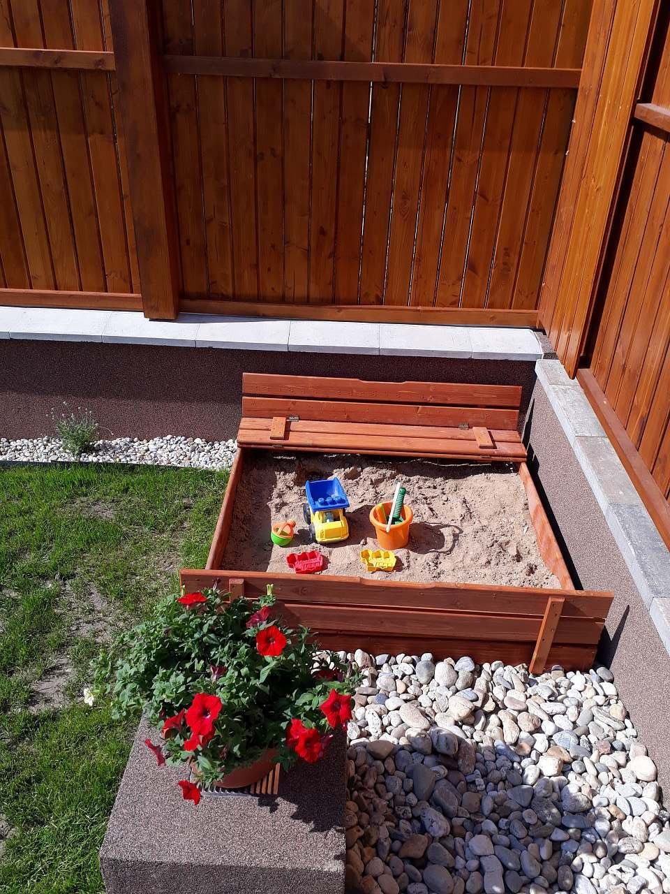 V letním období je k dispozici zahradní sprcha a na vyžádaní dětský nafukovací bazének.