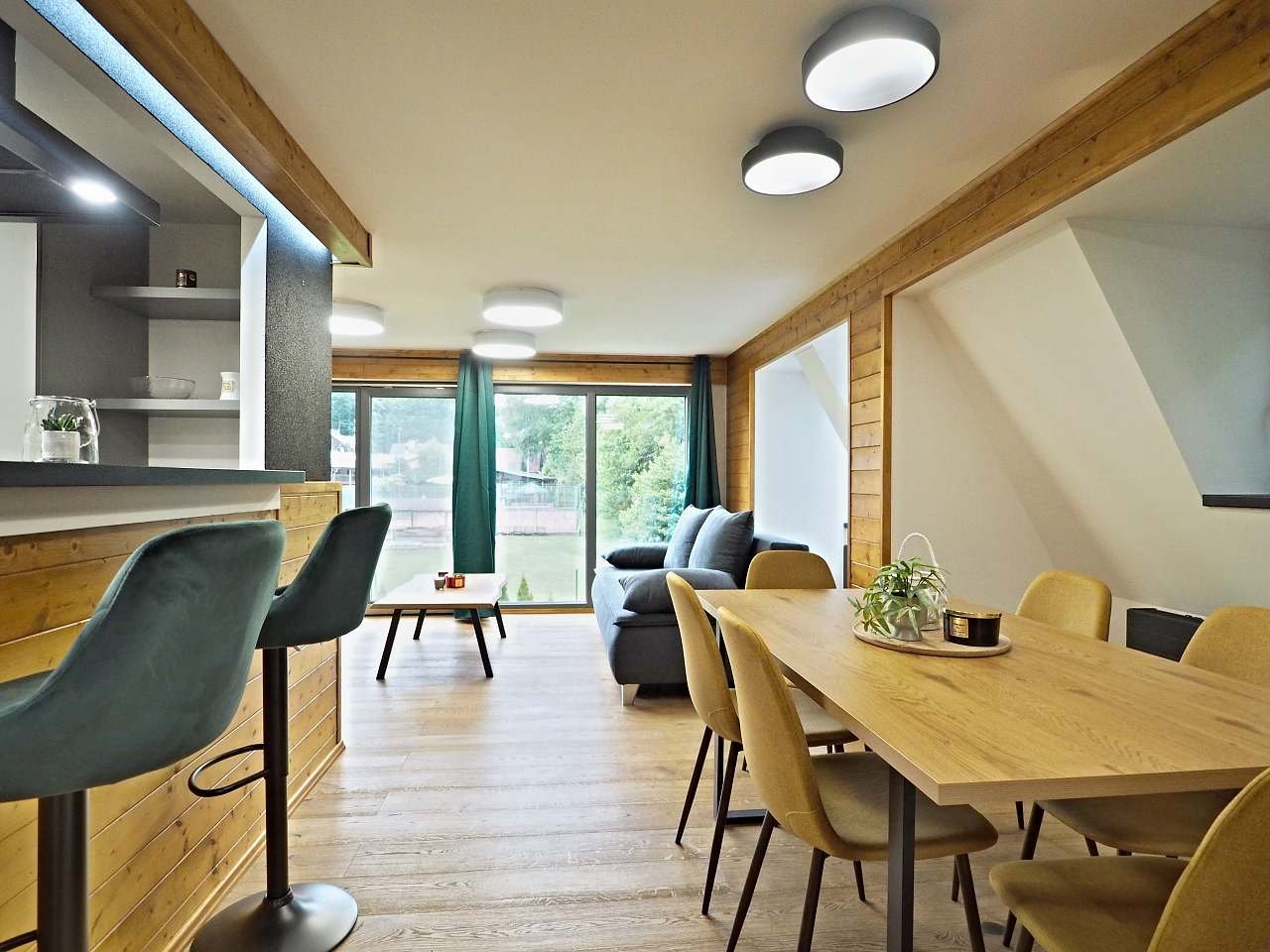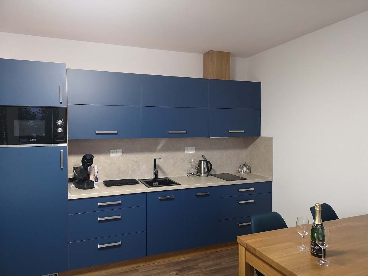 Apartmán je nově vybudovaný (r. 2022), přistavěný ke stávající nemovitosti. Apartmán je oddělen a má vlastní vchod ze zahrady. Je určen pro 8 osob. Má společnou kuchyň s jídelnou...