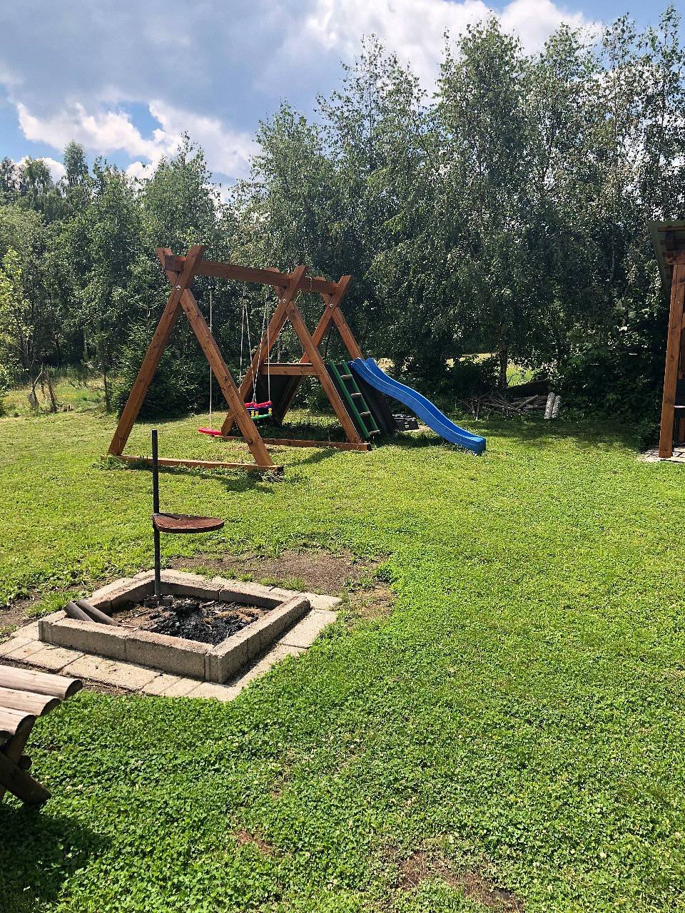 Nově postavená chalupa s oplocenou zahradou, dětským hřištěm a s opravdu velkou hernou, kde je kromě prvků pro děti umístěn také fotbálek, který si rádi zahrají i dospělí....