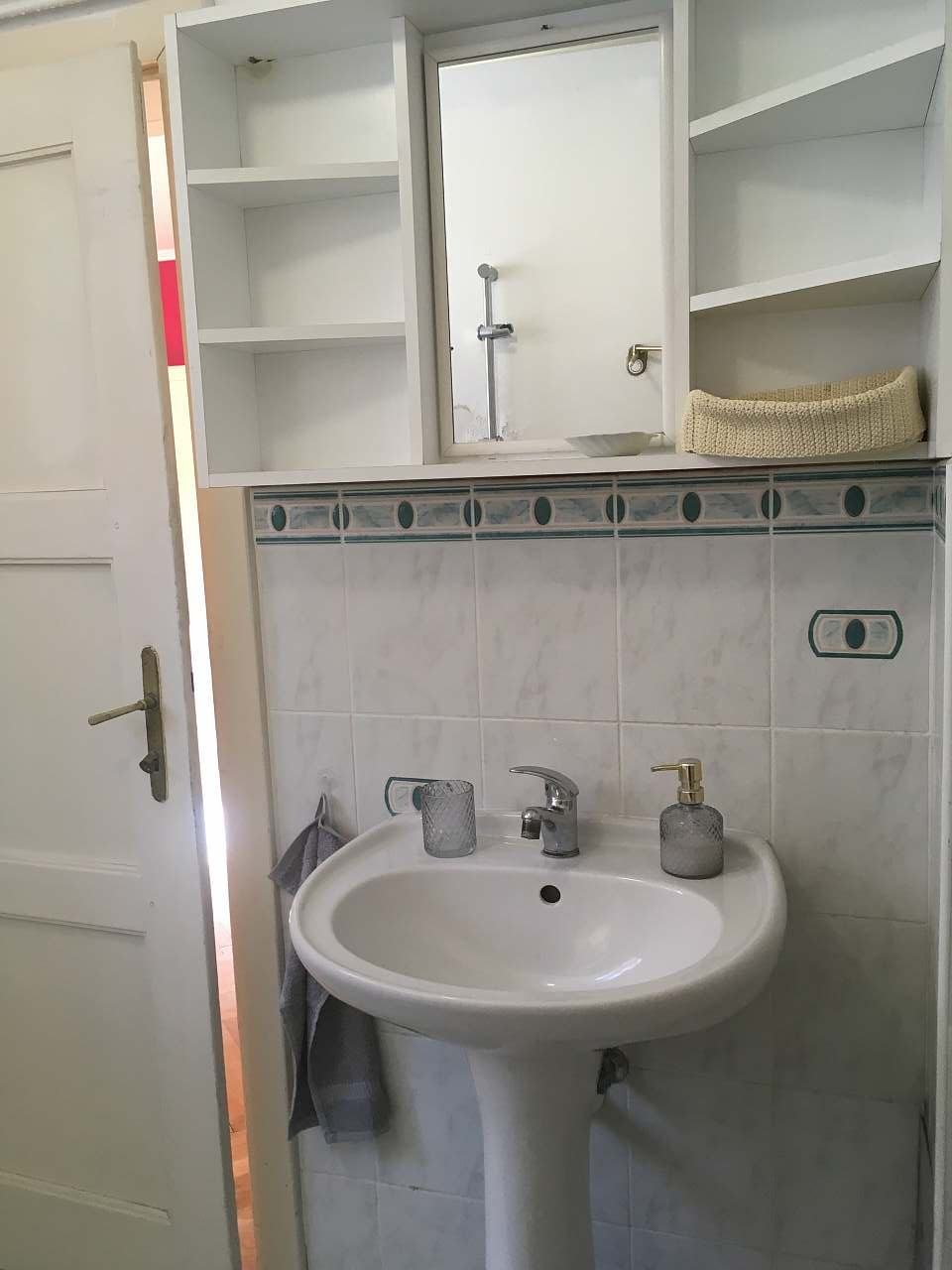 Součástí apartmánu je WC v původním dřevěném obložení a koupelna s vanou vedle ložnice. Druhá venkovní koupelna se sprchovým koutem a WC je v přízemí, vchod z uzavřeného dvora.