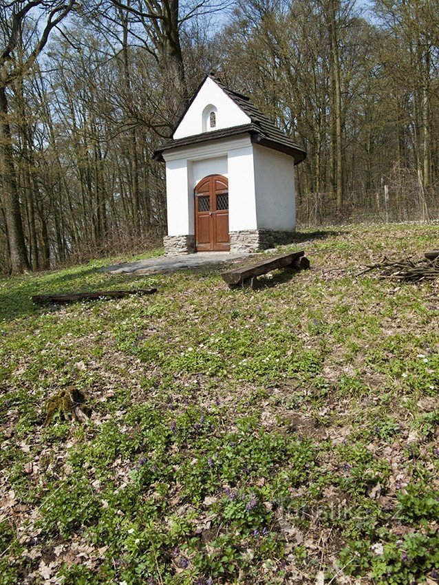 Před Hradištěm nad Moravičany a Stavenicemi najdeme u modré turistické značky malou kapličku zasvěcenou sv. Josefu. Podle vyprávění místní kroniky zde někdy v 16. století kolem Vánoc natrefil myslivec Josef Chaloupek na stádo divých sviní (podle popisu kanců, ale svině se mi víc líbí). Zachránil se před nimi úprkem na nedaleký dub. Kanci rozsápali i jeho věrného psa Lesana. Vroucně se modlil ke…