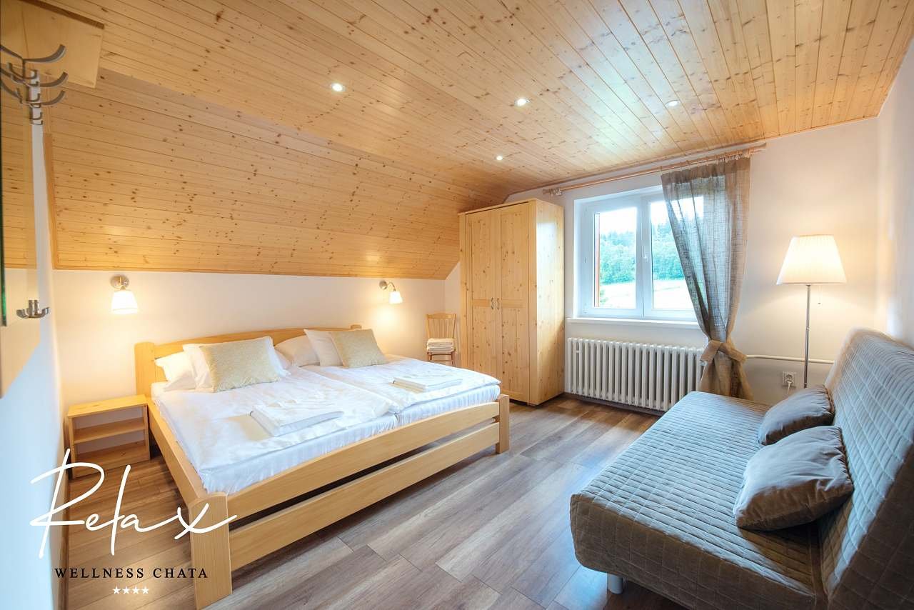 Wellness Chata Relax - Ostružná - stylově zařízená horská chata se soukromým wellness, s velkou jacuzzi vířivkou a pravou finskou saunou s ochlazovacím bazénkem a v létě s...