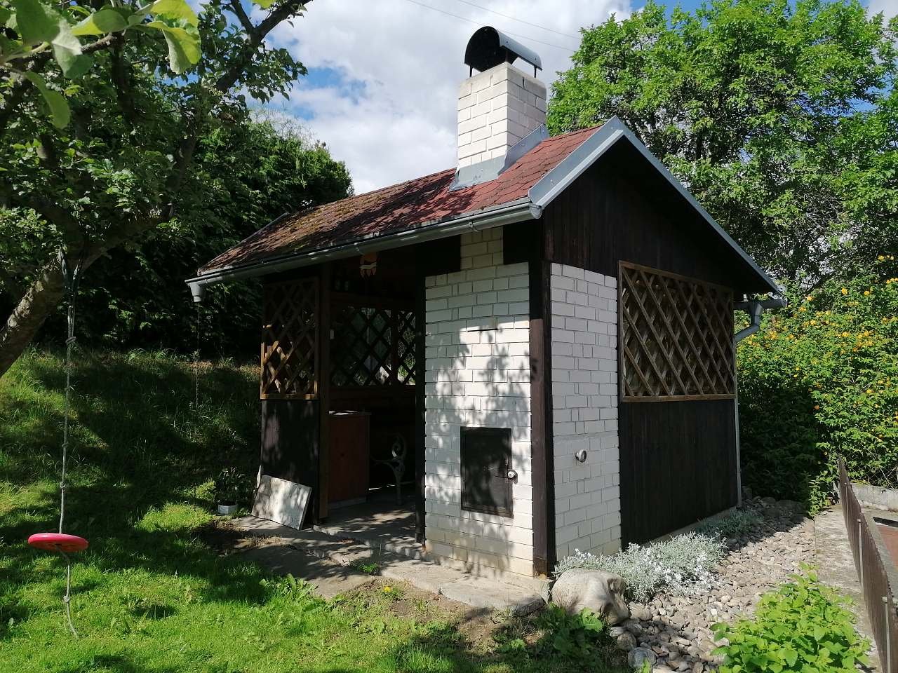 Součástí objektu je oplocená zahrada s altánem, venkovním grilem, dětskou skluzavkou, houpačkou a pískovištěm. Možnost uschování kol v garáži.