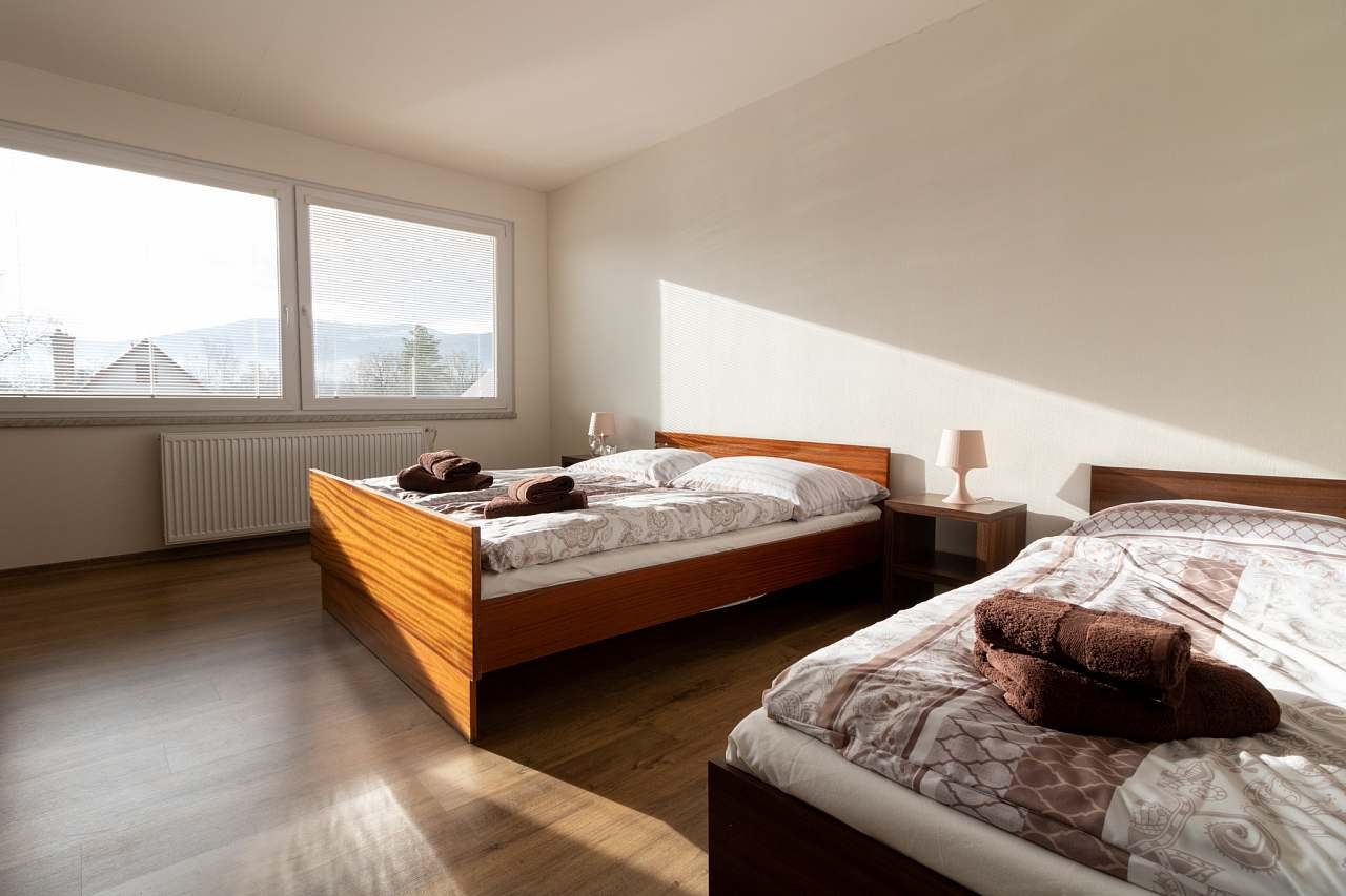 Celková kapacita objektu je 10 osob ve třech samostatných ložnicích.
