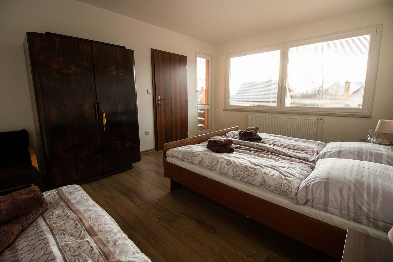 1x ložnice s balkónem - 3 lůžka - babiččin pokoj (manželská postel + jednolůžková postel).
