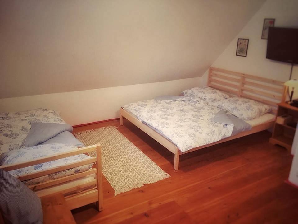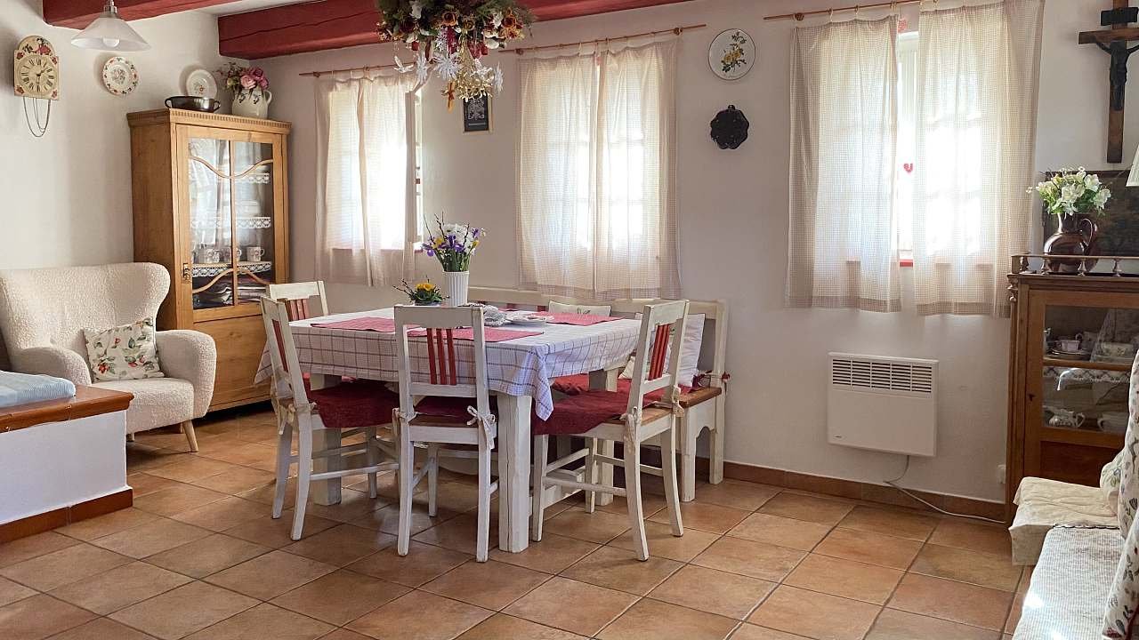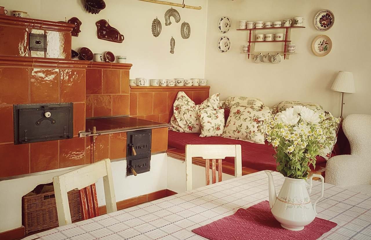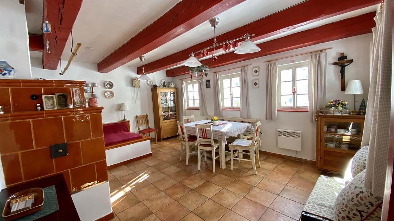 2x třílůžkový pokoj, 1x jednolůžkový pokoj, sednice s kachlovými kamny
