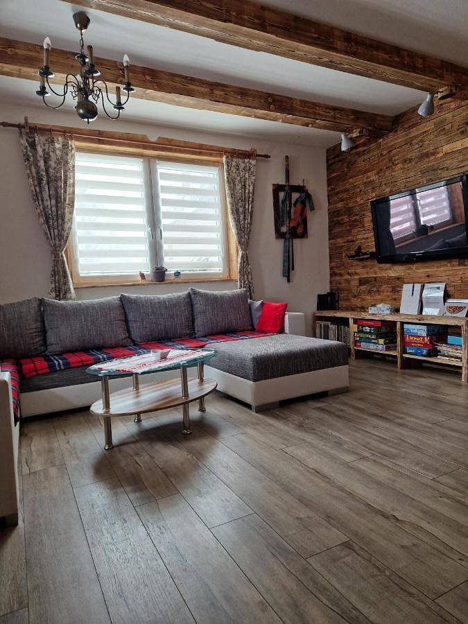 Chalupa má plne vybavenú kuchyňu, je tam chladnička, umývačka riadu, kávovar, rýchlovarná kanvica, mikrovlnka, varná doska, rúra na pečenie, sendvičovač, veľký jedálenský stôl a tiež funkčná pec na drevo. Z kuchyne je východ na komfortnú terasu. Obývačka je priestranná s veľkým rozťahovacím gaučom, vyspia sa na ňom dve osoby, s TV s plochou obrazovkou, pre deti malý kútik a veľa hier pre deti aj dospelých. Krb je umiestnený tak aby bolo príjemne teplo v celej chalupe. Na prízemí je kúpeľňa so sprchovým kútom a toaletou. Na poschodí sú dve spálne v každej je manželská posteľ a jednolôžková posteľ, nočné stolíky a vešiak na oblečenie. Na poschodí sa tiež nachádza samostatná toaleta, kde je umiestnená práčka.