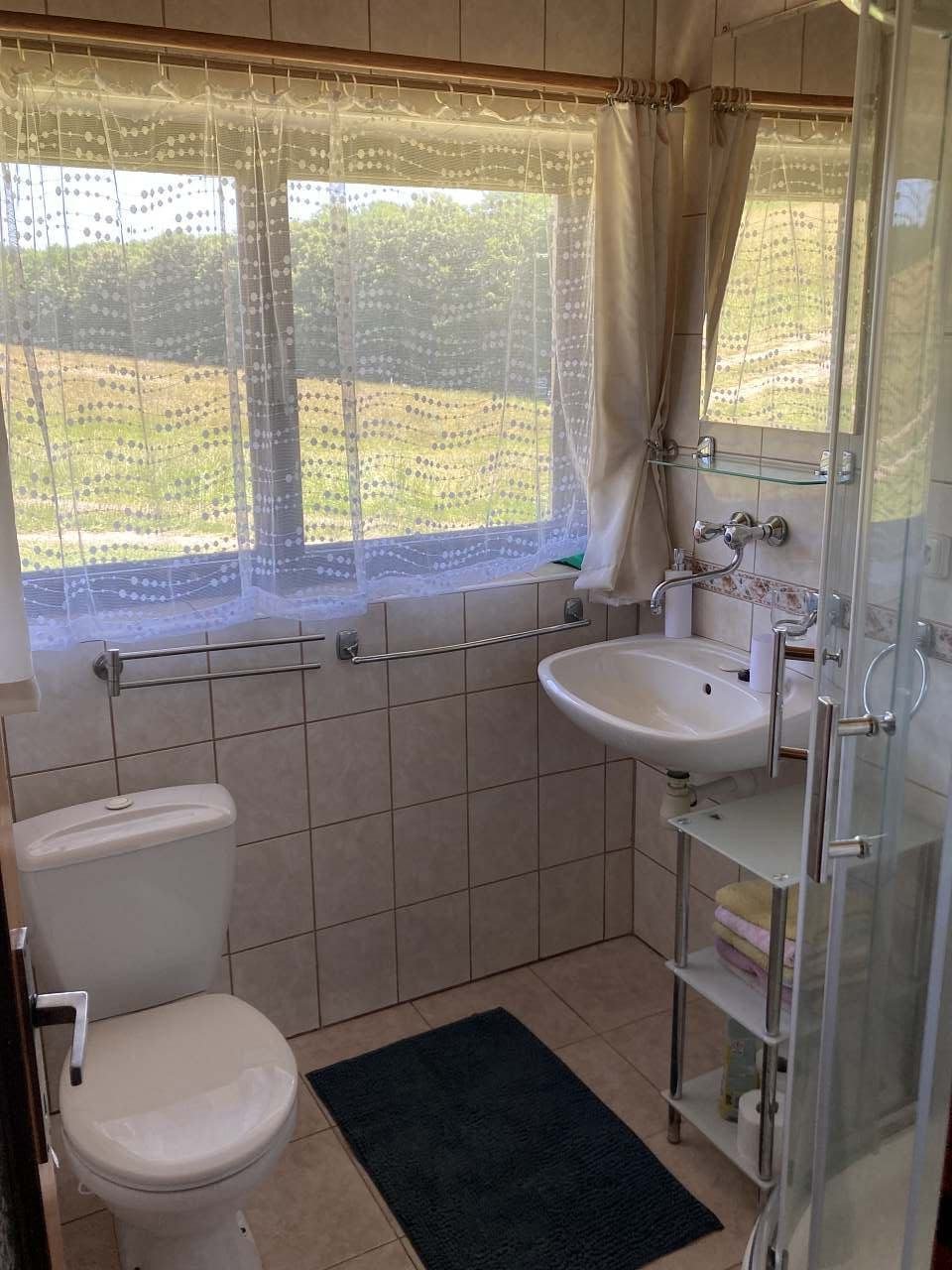 Koupelna se sprchou a WC.