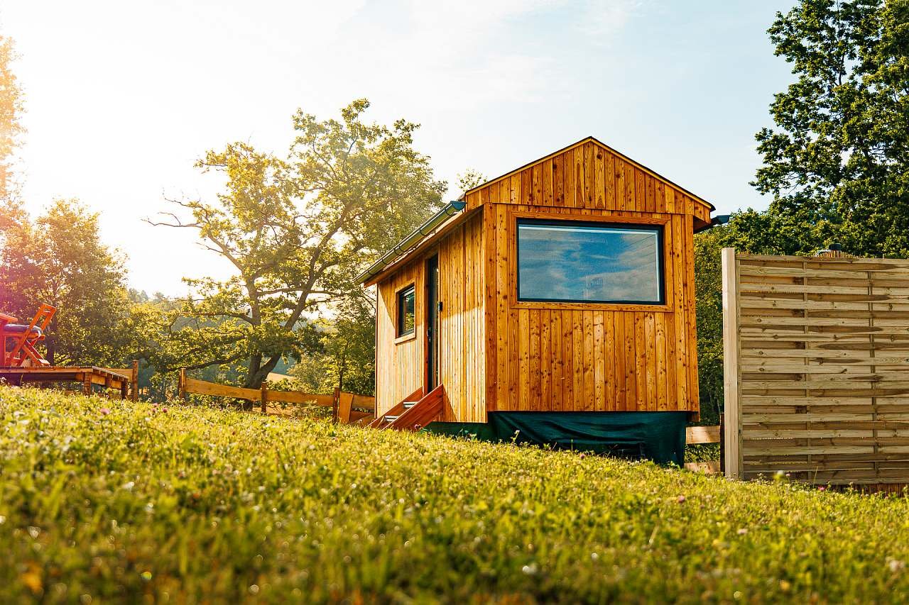 Bull - Barn je glampingová maringotka pro dva (a případně i jedno malé dítě), která nabízí jedinečný únik z města. Spěte pod hvězdami díky velkému oknu nad postelí, poslouchejte...