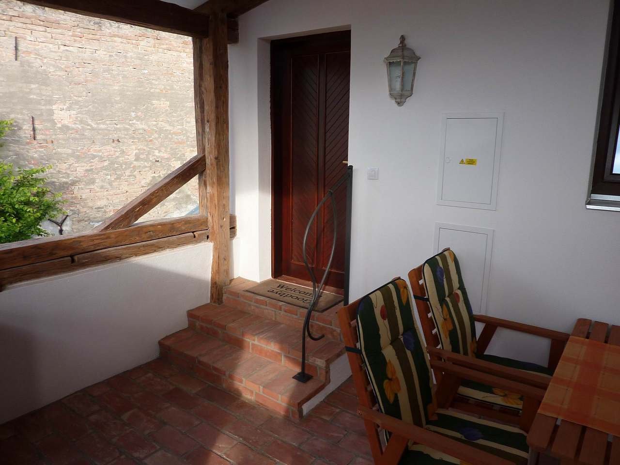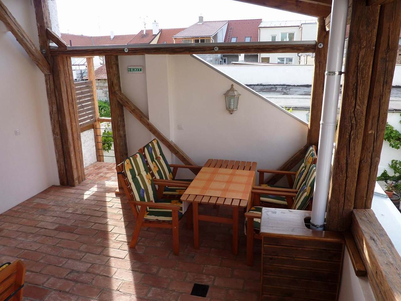 Apartmány č. 1 a č. 2 se nachazí v podkroví a mají společnou zastřešenou terasu rovněž v podkroví, každý apartmán má svůj stůl.
