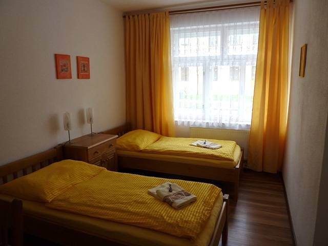 Apartmán č. 4: kuchyňka, 2 ložnice - 1x dvojlůžko + 2 přistýlky, 1x 2 oddělené lůžka