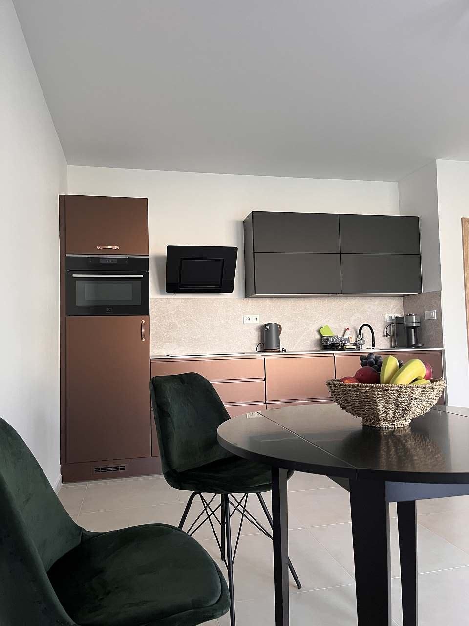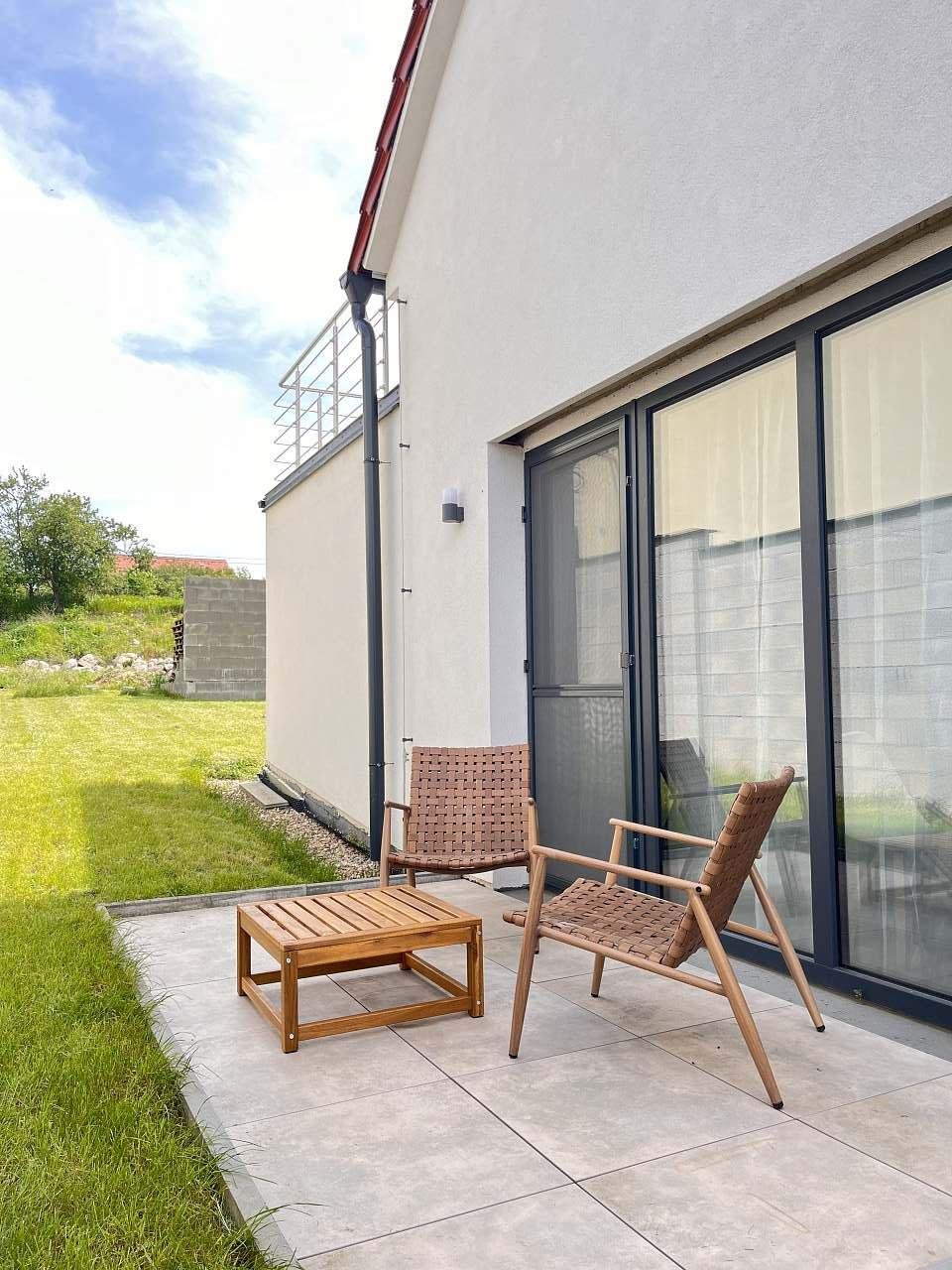 Kuchyně v každém apartmánu je vybavena varnou konvicí, kávovarem Nespresso Vertuo, lednicí s mrazničkou, mikrovlnou troubou, pečící troubou, sklokeramickou deskou, digestoří, dřezem, kuchyňským nádobím. V obývacím pokoji je TV. V celém objektu je Wi - Fi zdarma. Zahrada, soukromé terasy, ohniště, gril. Možnost úschovy kol v kolárně.