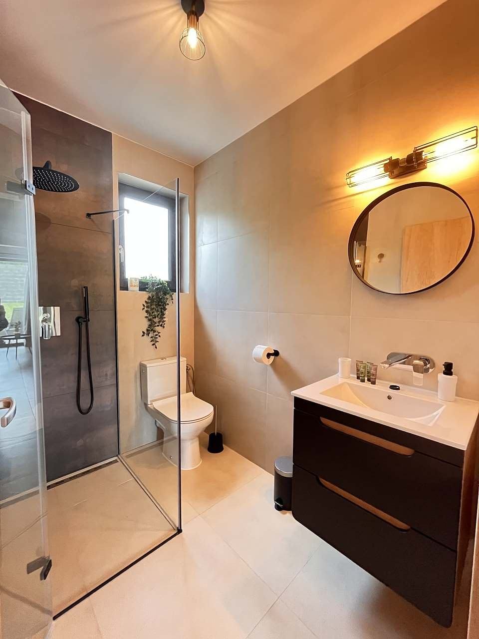 Každý apartmán je vybaven vlastní koupelnou se sprchovým koutem, WC a umyvadlem. Součástí vybavení koupelny jsou ručníky, toaletní papír, mýdlo, šampón, kondicionér, fén.