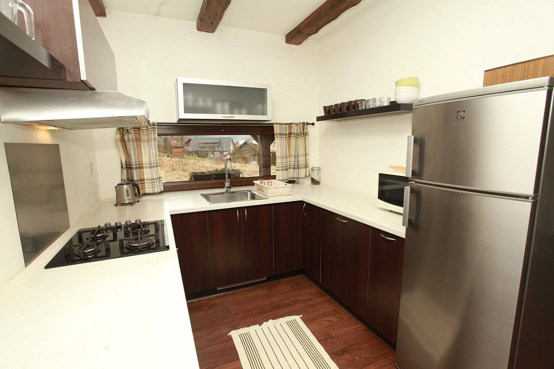 Každá chata je nadstandardne vybavena vratane kuchyne s umyvackou, chladnickou s mrazakom, rychlovarnou konvicou, sporakom a el. rurou. V kazdej izbe LCD telavizor, wifi, a v kupelni na prizemi je tiez infrakabina. Na vonkajsej terase sa nachadza velka virivka pre 6 dospelych osob. Tiez sa tam nachadza gril a je mozne aj kotlik na gulas priniest priamo na terasu.
