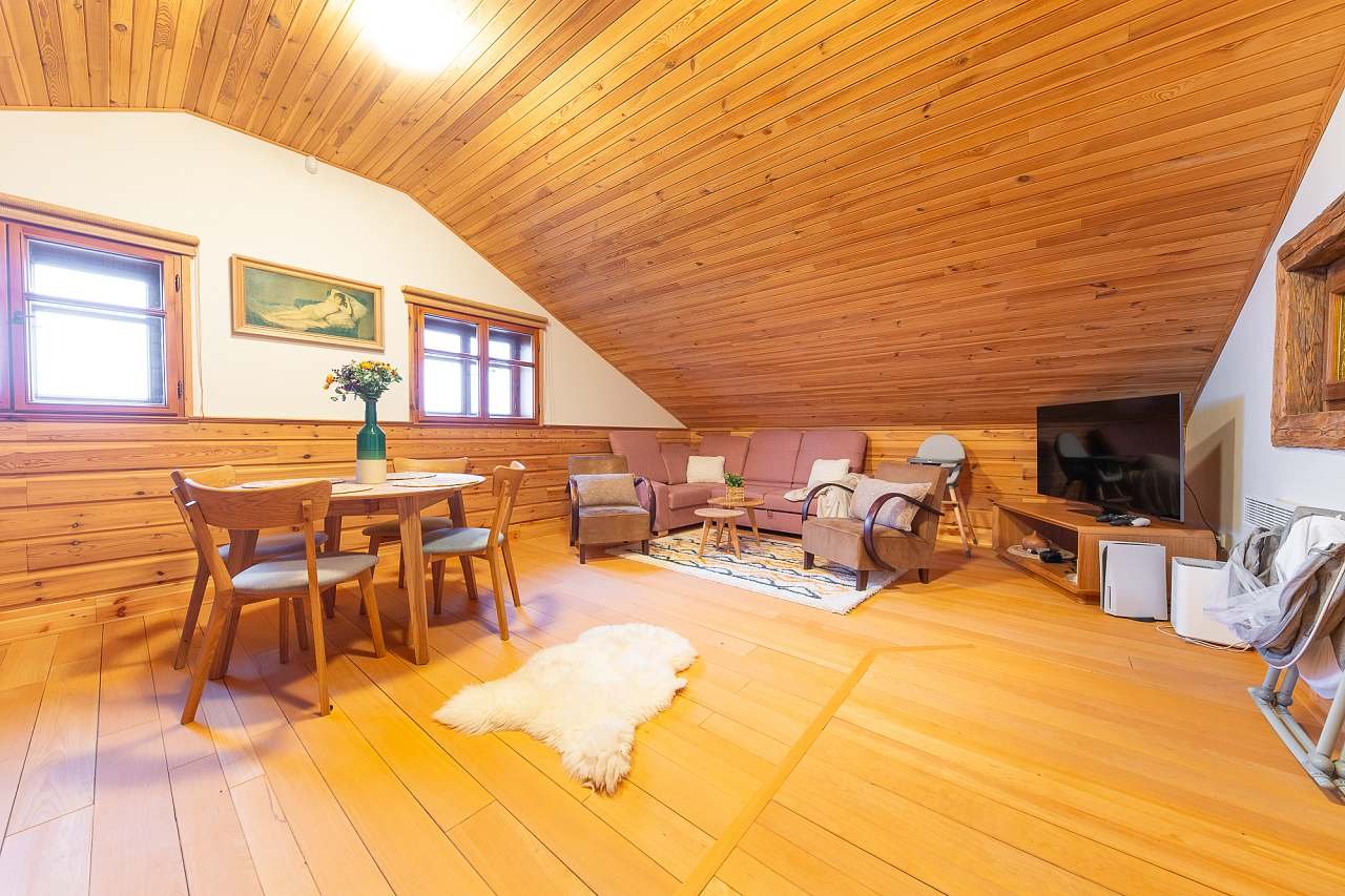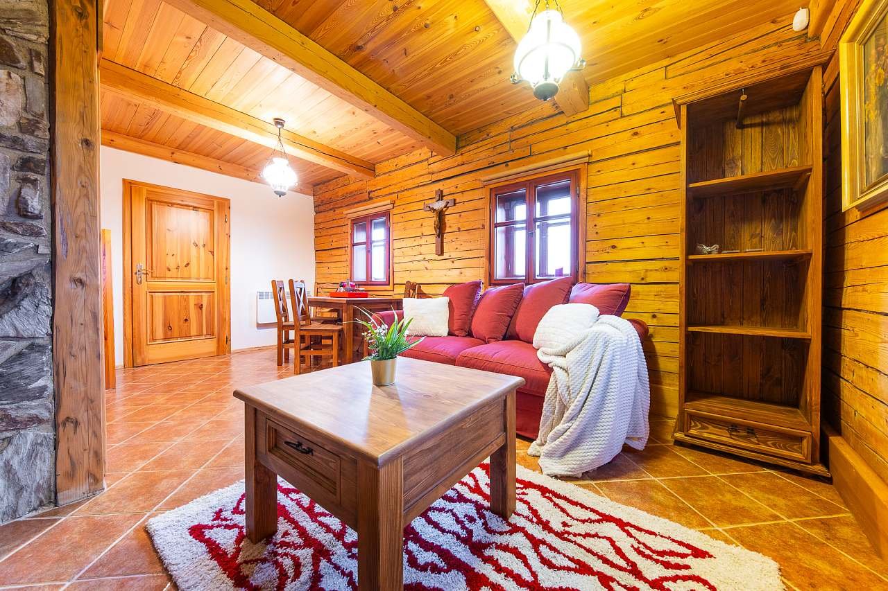 1) Apartmán Myslivec plně vybaven včetně vybavené kuchyně s potravinovými doplňky v bio kvalitě 1/3 Chalupy