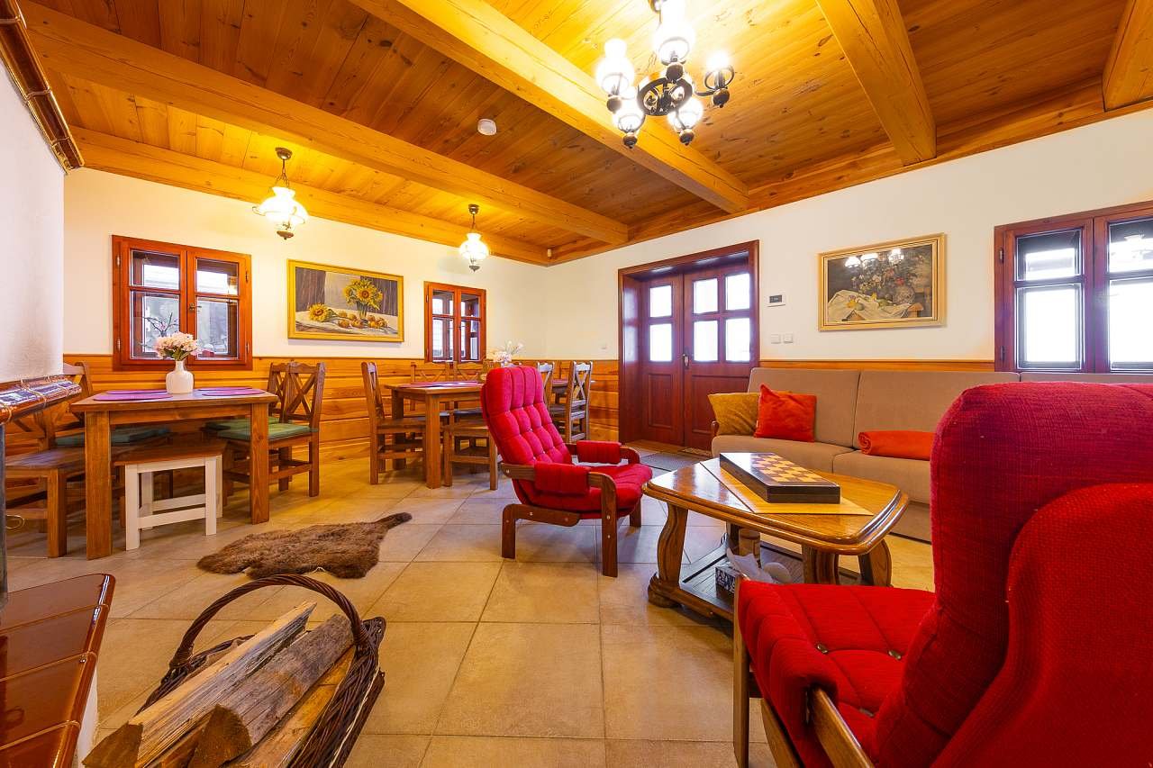 Wellness zóna: Vyzkoušejte naši zónu s finskou saunou pro 6 osob, vířivým dřevěným sudem pro 6 osob a venkovní sprchou. Pro otužilce je zde připravena káď na ochlazení. V létě se můžete opalovat na lehátkách, kochat se horami a zároveň sledovat své děti, jak si hrají na hřišti nebo zkoušejí stolní tenis a jiné hry.