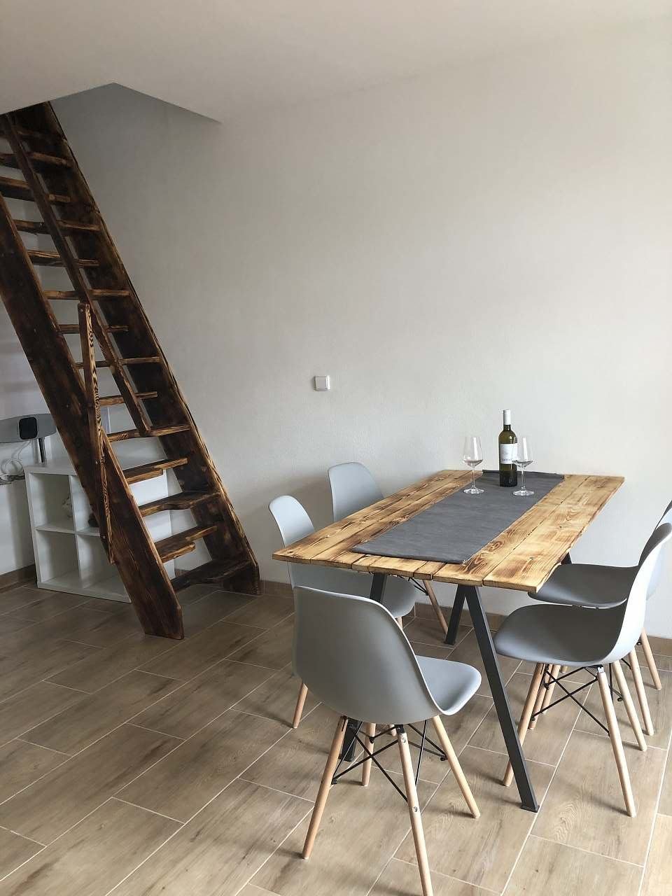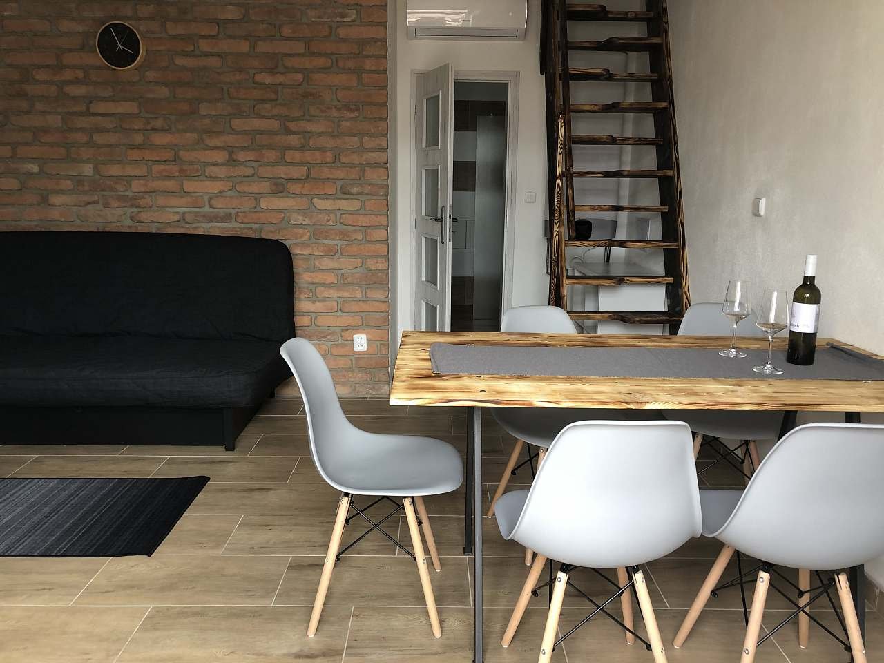 Mezonetový apartmán,v přízemí rozkládací gauč a kuchyň,samostné sociální zařízení a v patře po mlynářských schodech dvě manželské postele