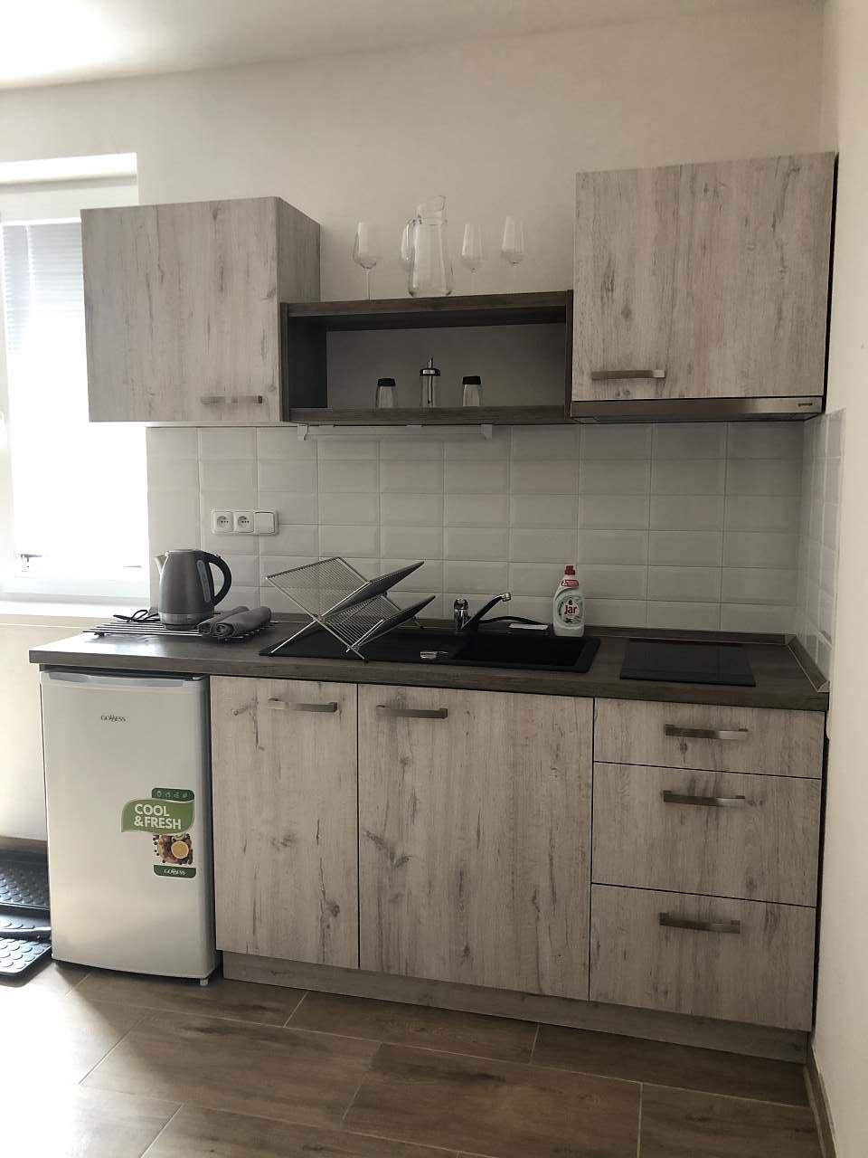 Pokoj s manželskou postelí,samostatné sociální zařízení,plně vybavená kuchyň