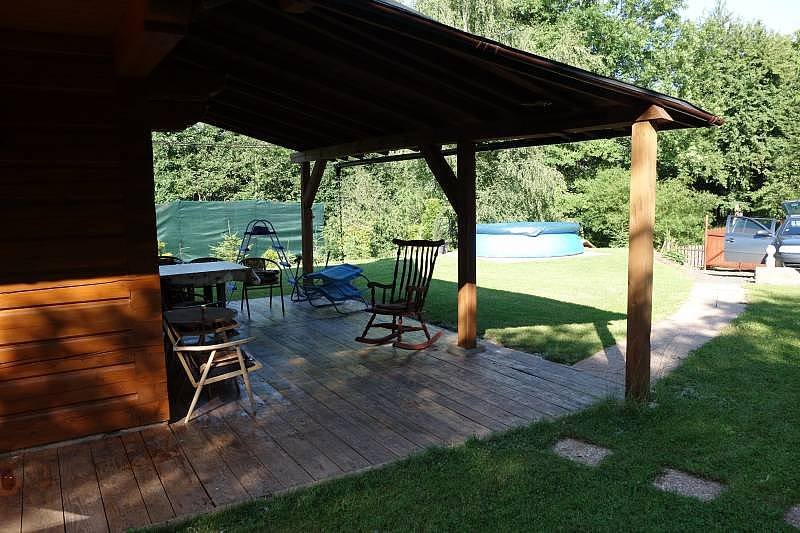Vybavení interiéru celé roubenky (nábytek / podlahy / okna) je ze dřeva či z masívu. Teplá voda v celém objektu, ohřev - bojler. 2x TV, přízemí a patro. V obýváku se ze sedačky můžete koukat na TV a zároven do krbových kamen. K objektu velká zahrada, zastřešená venkovní terasa. V létě k dispozici nadzemní bazén. Gril na dřevěné uhlí