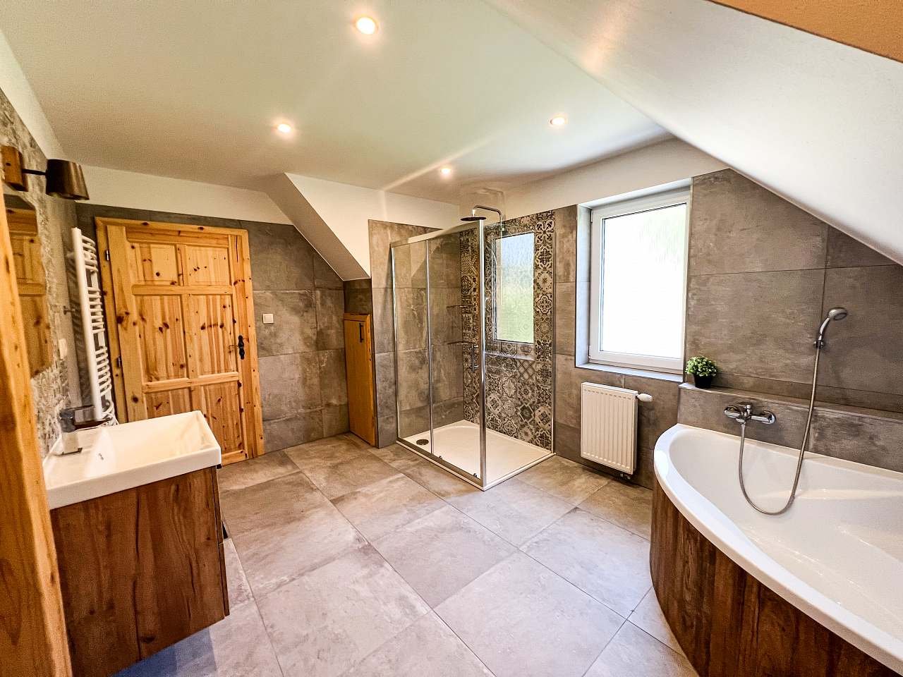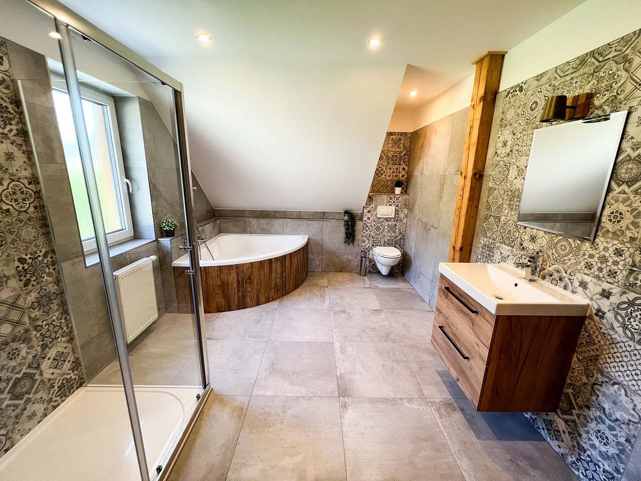 1.patro - koupelna (sprchový kout + vana) + WC
