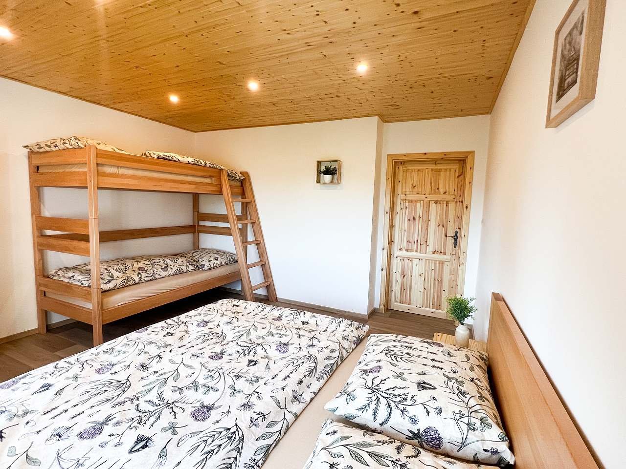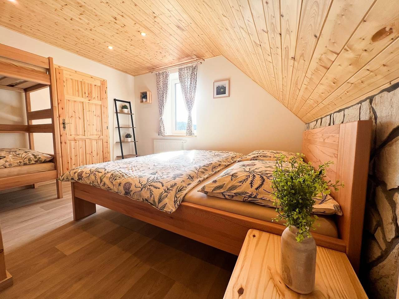 1.Samostatná ložnice - 1x manželská postel, 1x palanda